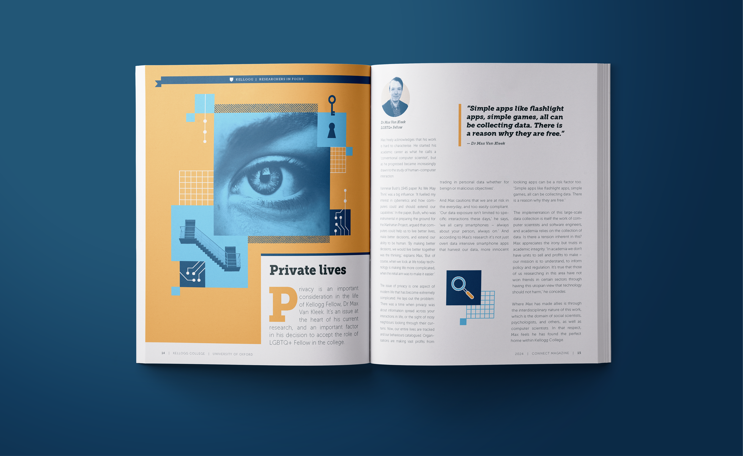 Kellogg College’s annual Connect Magazine plays an important role in sharing stories from across Oxford’s most international and interdisciplinary college, while also supporting alumni engagement and fundraising. Over time, the publication needed a stylistic update to ensure it reflected the forward-thinking nature of the college. It also needed a clear consistent system to unify disparate visual assets that would often come from many sources.